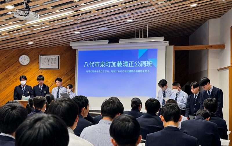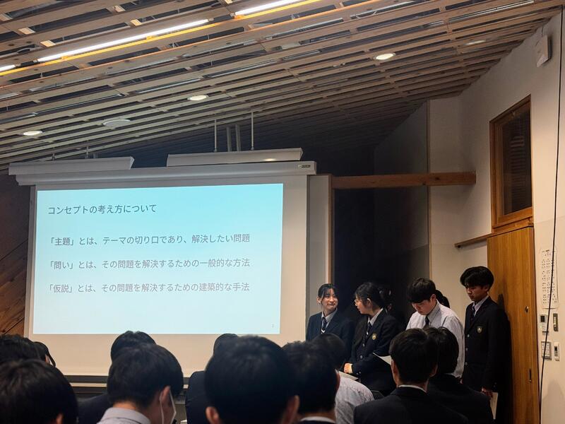それぞれの研究テーマに向き合ってきました。その集大成として、建築科2年生や専攻科1年生、多くの先生方の前でこれまでの活動報告を行いました。