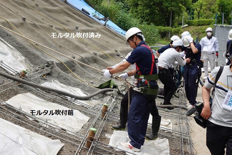 モルタルをすごい圧力で吹き付けるため,材料が飛散します。