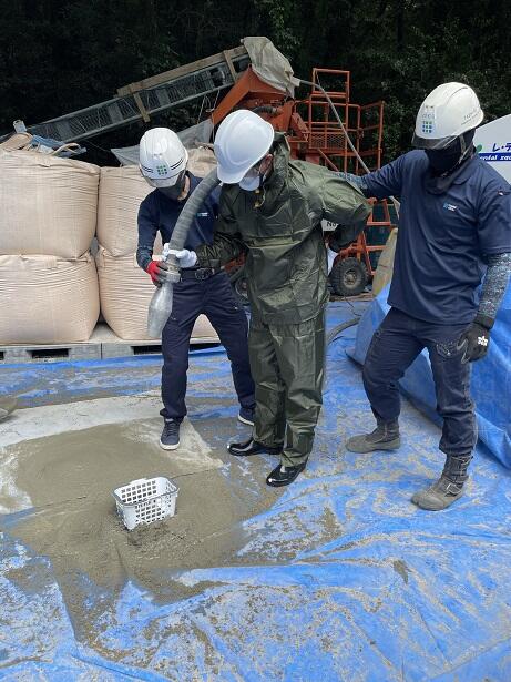 体験②「吹き付けプラントによるモルタル作成と吹き付け体験」