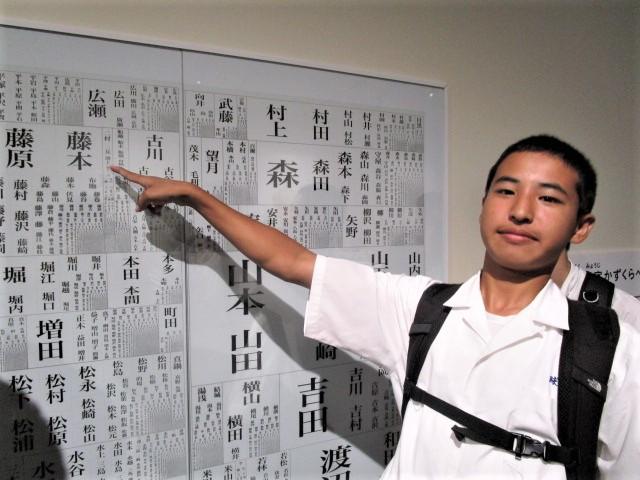 全国およそ8万の名字を並べたデザイン。名字の大きさはその名字の人口に比例しているそうです。