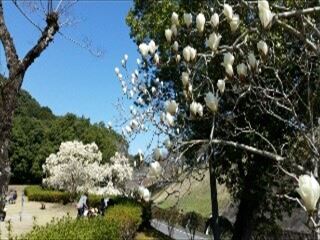 本校下のあやめ公園の木蓮、一斉に美しい花が咲き誇っていました。上品な甘い香りを漂わせる白色の花が青空によく映え、この時期つい愛着をもって眺めてしまいます。
