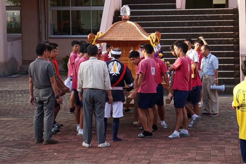 今年も本校の体育大会の応援リーダーたちと有志で神輿を担ぎます。