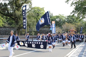 午前と午後に分け、人吉の町を「エッサッサ!」や「神輿」を担いで練り歩きます。生徒の体力と集中力には本当に驚くとともに、たくましさを感じます。