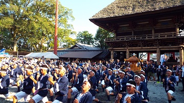 慎重に鳥居をくぐり、いよいよ「宮入」です 「宮入」の前に、エッサッサで気合いを入れます