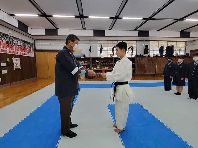 3月17日(金)16時15分から、陵和会(同窓会)より、空手部への奨励金授与式が道場で行われました。
