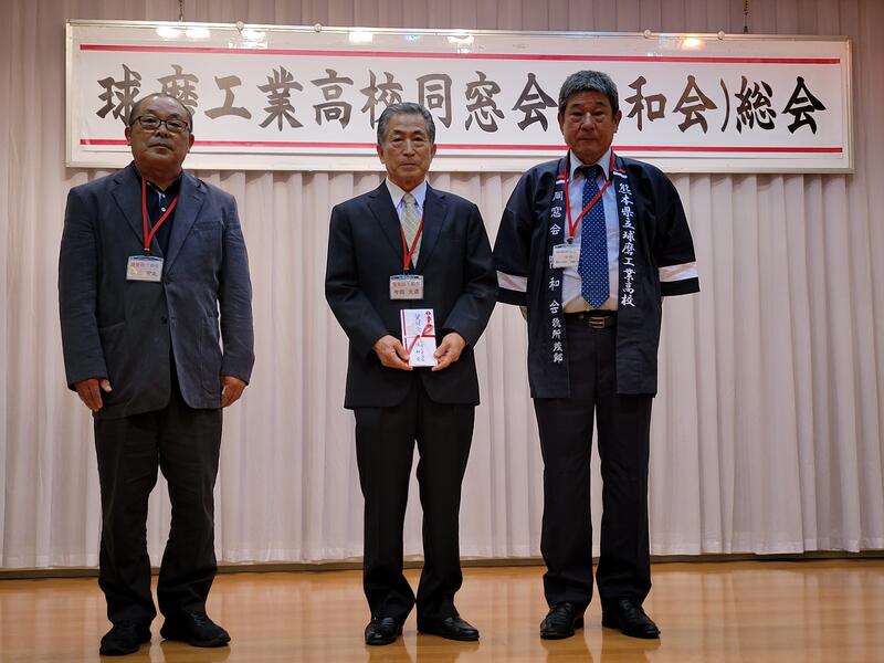 奨励金を授与されたのは、今岡元道さん(電気科1期生)と恒松安丸さん(建築科7期生)です。
