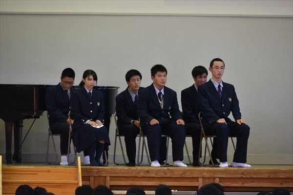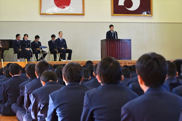 11月25日、生徒会役員改選の演説会が行われました。生徒会長候補1名、副生徒会長候補2名と応援者による演説でした。それぞれ現在の学校について感じていることなどを述べ、これからどのような学校づくりをしていくかを全校生徒へ向けて伝えました。3年生から下級生へ、バトンタッチの時期がきたことを実感させられました。生徒一人一人、学校のことを考えるよい機会になったのではないでしょうか。