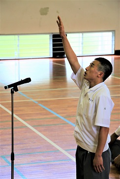 5月19日(金)に凛然寮の新入生歓迎会を行いました。上級生からの歓迎の言葉のあと、寮生と舎監の先生方で弁当を食べ、新入生から一人ずつ自己紹介を行ってもらいました。自分の趣味や一発芸を披露し、盛り上がりました。その後、体育館にてドッジボール大会を行いました。人吉高校・球磨工業高校の混合チームでそれぞれの試合をし、舎監の先生方も最後は一緒になって、汗を流していました。寮生は、沖縄や福岡など遠くから来ており、親元を離れて共同生活をしています。これを機に、人吉高校と球磨工業高校の寮生の絆がより深まって欲しいです。