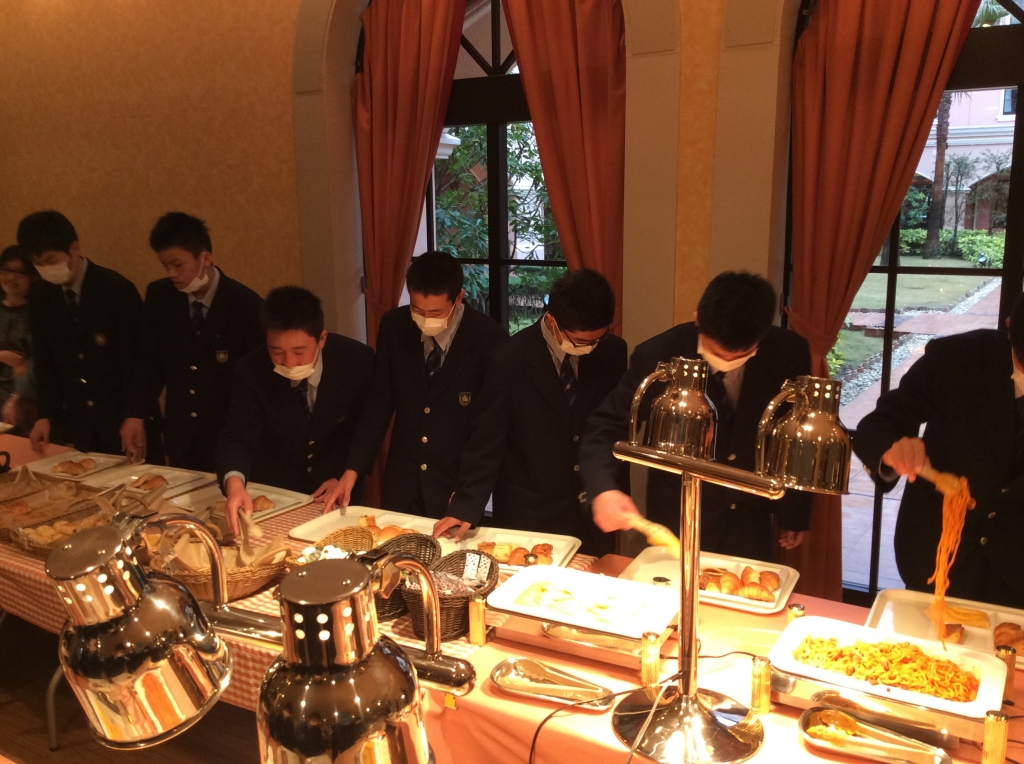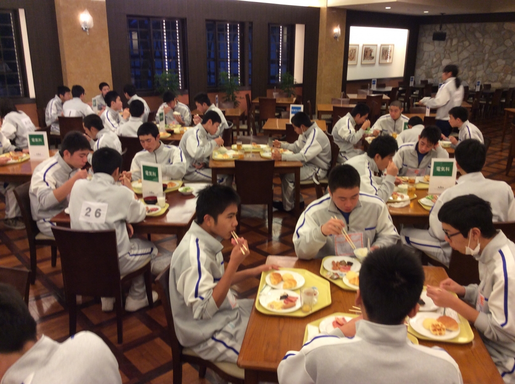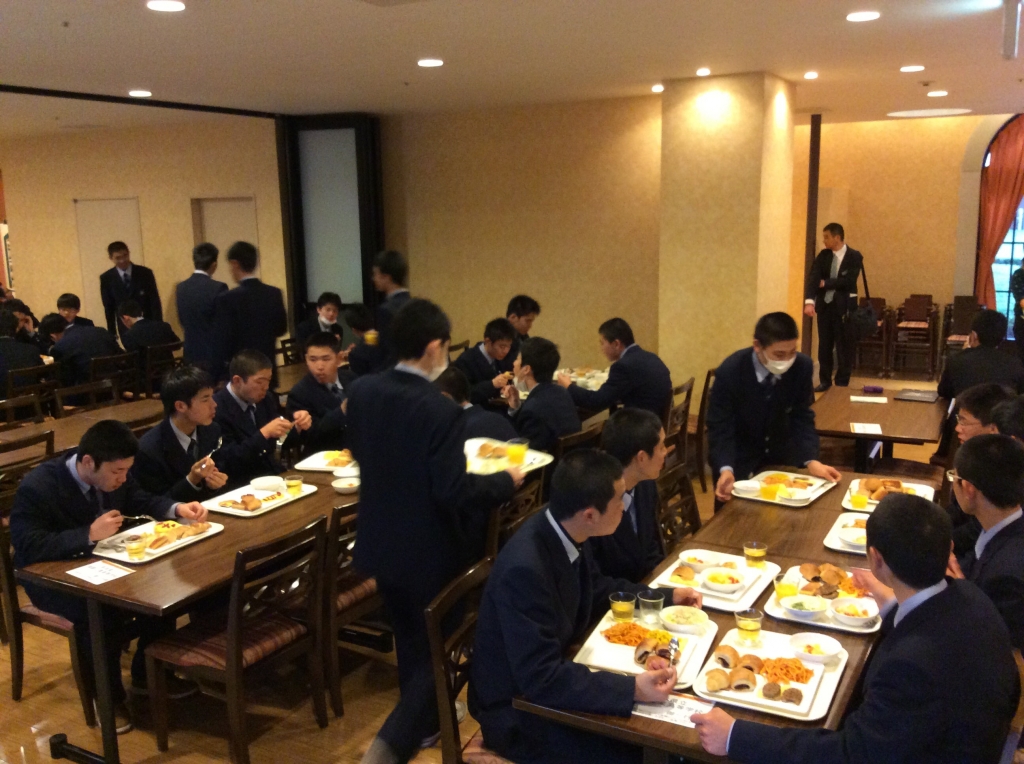 スキーや部活動の朝練による疲労からか、大多数の生徒たちが眠い目をこすりながら朝食会場へ。しかし昨日とはまた異なるホテルのおいしいメニューに舌鼓を打ち、各自元気を取り戻していたようでした。
