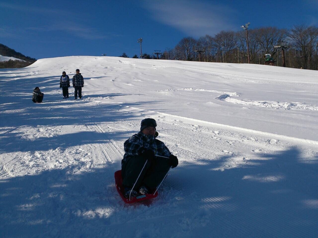 スキー二日目のこの日も天候に恵まれました。ゲレンデ到着後すぐに練習開始!昨日基礎的な技術を学んだばかりの生徒たちが、始まってすぐにレベルの高い斜面までリフトで上がっている様子が見られました。また、転倒した同班の生徒を助けたり、担任の呼びかけに対して笑顔でポーズをとって見せるなどの余裕も感じられました。見学していた生徒たちも、そり遊びに興じ、それぞれが素敵な思い出を作っていたようです。