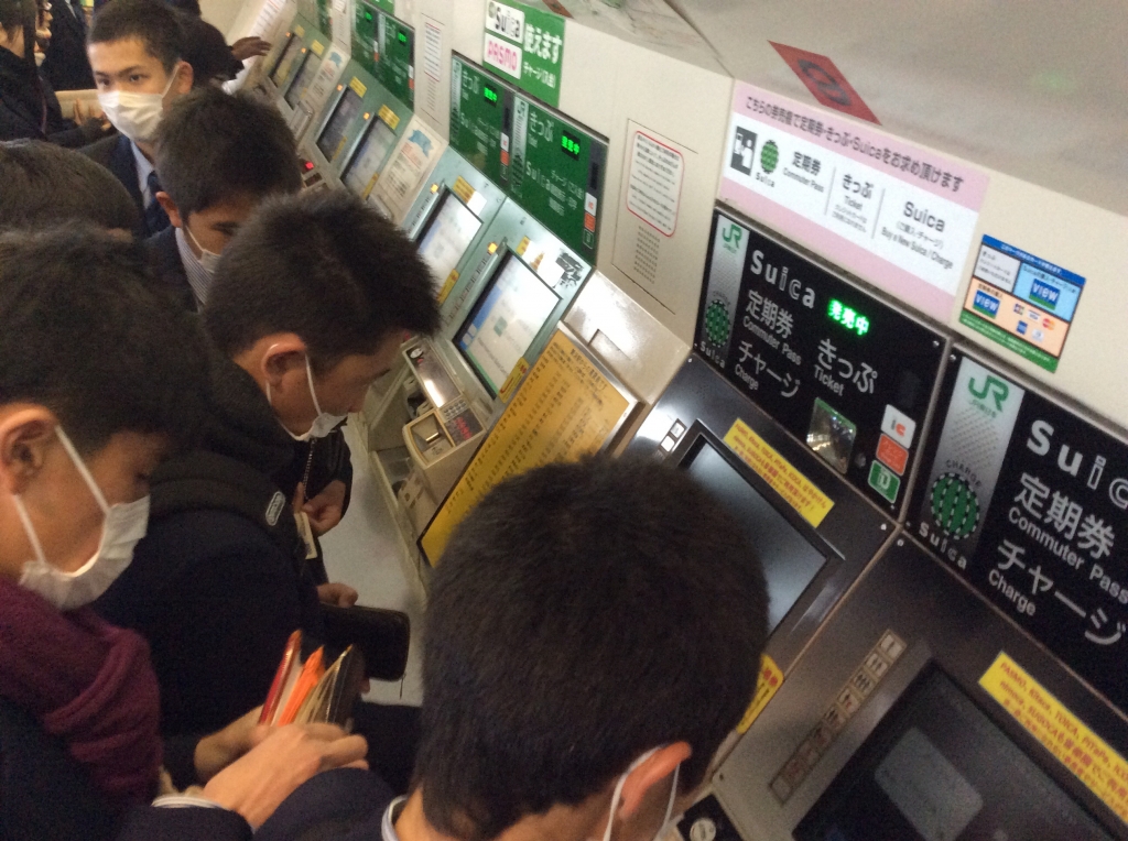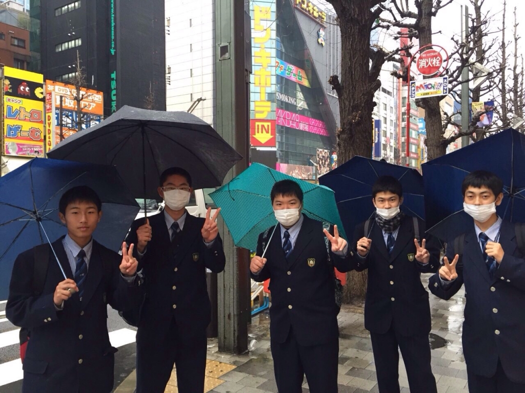 1月22日(木)、今日は生徒たちが待ちに待った東京自主研修の日です。朝9時から続々と班毎に出発して行きました。最寄りの駅までは無料のシャトルバスで行きましたが、早速駅にて切符はどれを買ったらいいのか?「Suica」って何?という生徒たちの戸惑う姿が見られました。また、改札口をくぐる時にも切符の入れ方、Suicaの照らし方がわからず、なかには切符を取り忘れていきそうになる生徒もおり、右も左もわからないといった迷子状態でした。こうした状況の中で班員みんなが力を合わせ、通常であれば、2、3分で済むところを10分以上かけて頑張っていた様子が印象に残っています。