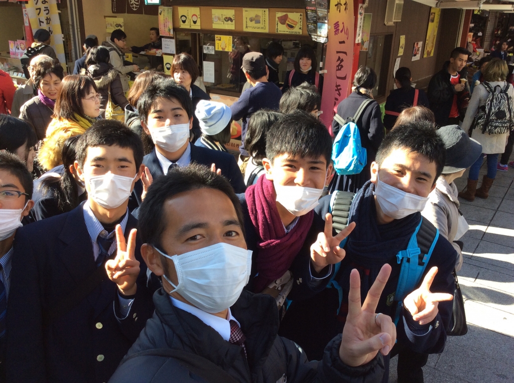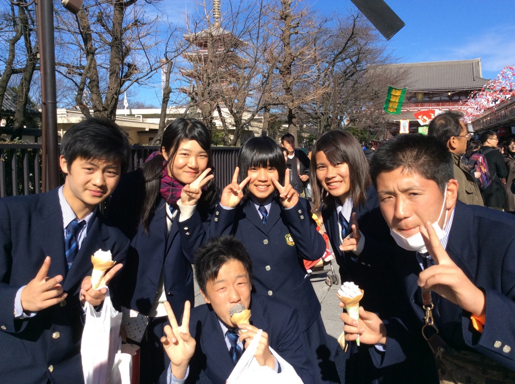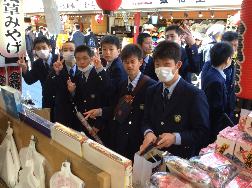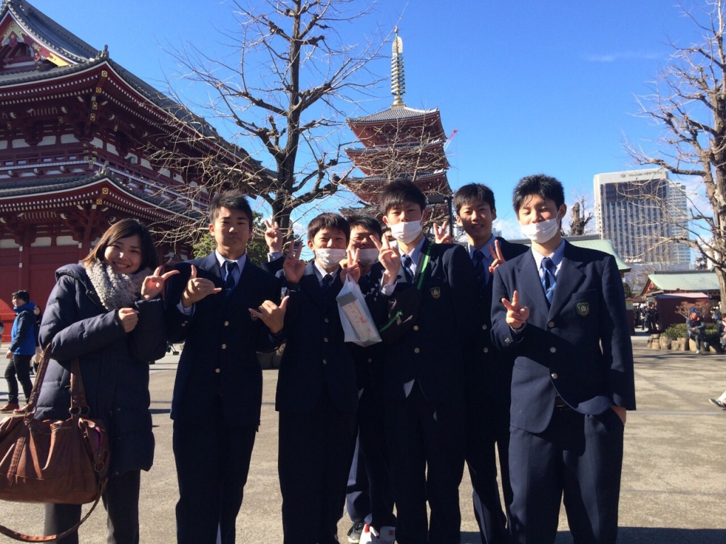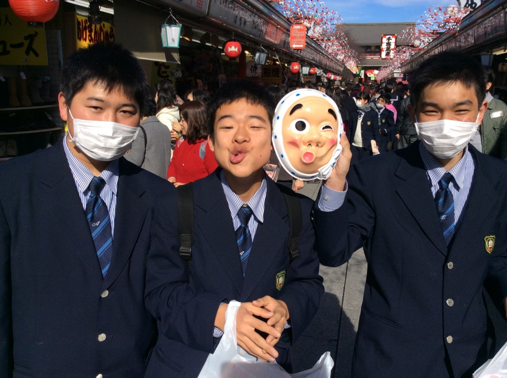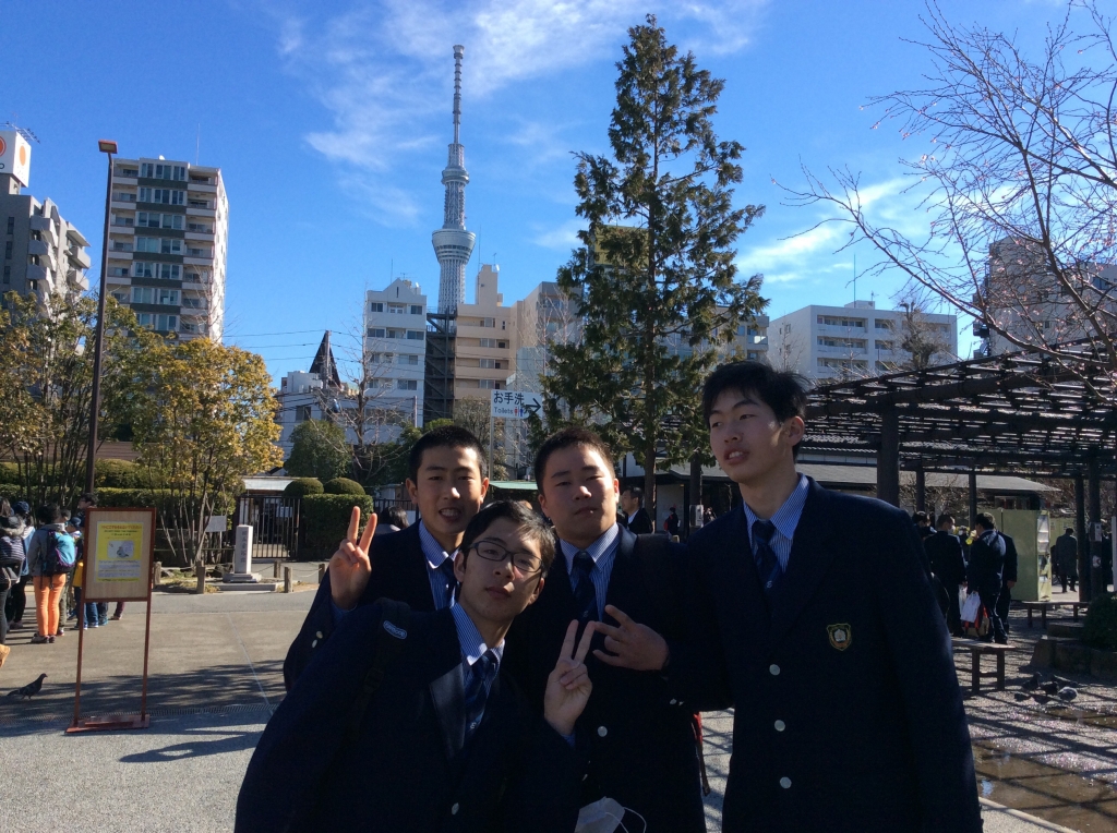 1月23日(金)、修学旅行最終日の朝は4日間の疲れもあり体調を崩している生徒がいるのではと心配しましたが、朝食に遅れることもなく笑顔で会話しながら食事を済ませていました。その後、荷物をトラックに積み込み(24日昼以降に各自宅に宅配される予定)予定通りホテルを出発、浅草寺へ。浅草寺での滞在は一時間程度でしたが、お土産を買ったり雷門で写真を撮ったりと各々自由散策を楽しんでいました。