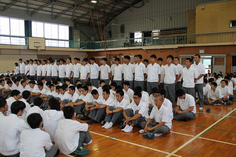 学校長及び生徒会副会長の星子君より激励の言葉がありました。その後、各部より大会日程の紹介や目標などを述べました。