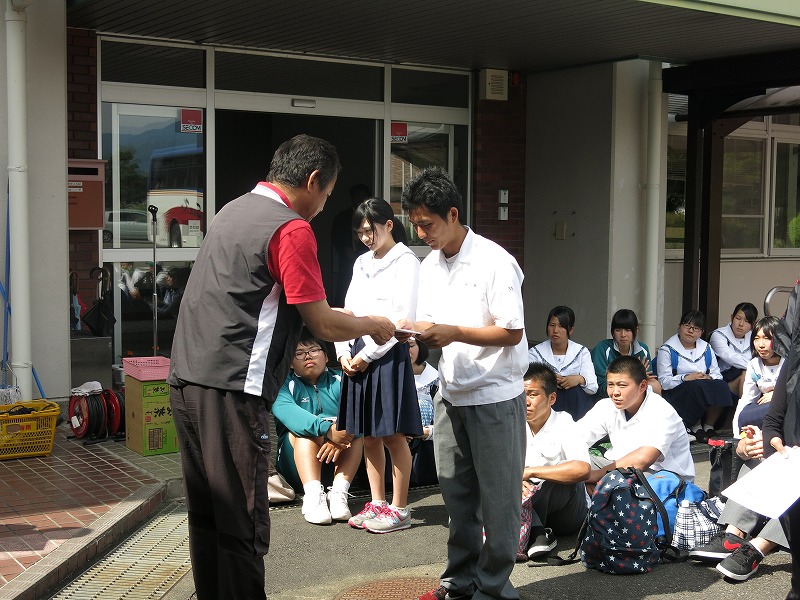後片付けまでおわり、最後に生徒会長石川君が感謝状を受け取り、ボランティア活動が終了しました。