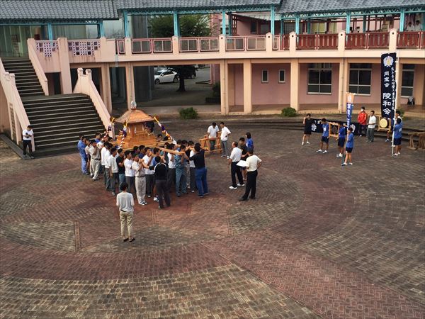 おくんち祭の練習がはじまりました。今年度もたくさんの生徒が参加します。迫力ある神輿担ぎにご期待ください。