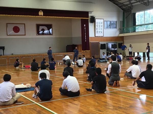 10月20日、本校職員及び部活動代表生徒を対象としたAED研修が行われました。初めての生徒も多く、戸惑いながらも一生懸命身につけようとする姿が印象的でした。有事に備え、しっかりとした技能を身につけました。