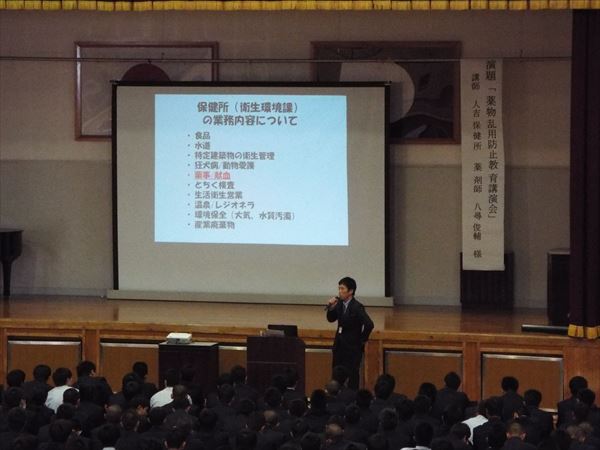 11月9日、薬物乱用防止講演会が行われました。薬物の恐ろしさや害について、スライドの写真や資料を見ながら学びました。改めて薬物の危険性について再認識することができました。
