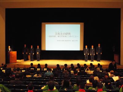 生徒研究発表 「三和土(たたき)の研究」 ”温故知新 僕らが未来につなぐこと”の研究発表を行いました。