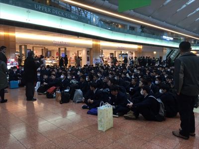 1年修学旅行も、あとわずかとなりました。最終日の午前、施設・企業等見学も無事終了し、いよいよ飛行機・バスを使い、学校に向けて帰ります。