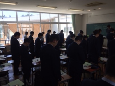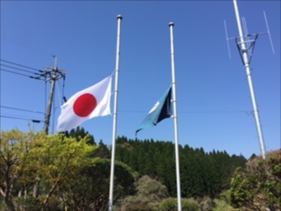 1日も早い復興を願うとともに、地震により犠牲となられました方々に哀悼の意を表し、黙祷を捧げますので、御協力をお願いします。