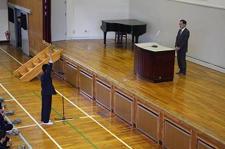 人吉・球磨地区体育大会の激励会が体育館で行われました。みんな、引き締まった表情をしていました。