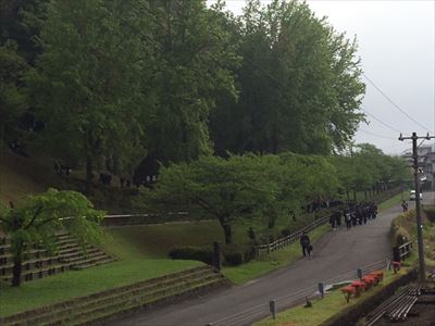 武者行列には、本校カヌー部が、人吉高校カヌー部と一緒に参加。開会前の勇壮な武者行列を行いました。