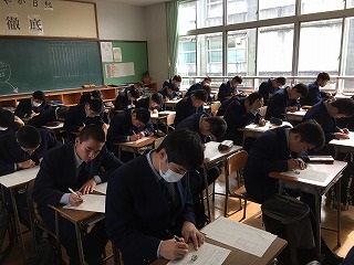 2学期終業式後、校内検定のまとめがありました。2学期最後の校内検定ということもありみんな真剣な表情で取り組んでました。