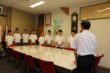 を前に、出場選手が校長室を訪れ、大会への意気込みを伝えました。