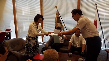 10:00から、校長室において5名の学校評議員の方に西校長より委嘱状が渡された後、10:10から各科の実習棟及び実習の見学、3年生の授業風景を見た後、11:00より学校評議員会議が行なわれました。