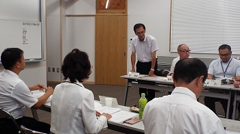 西校長『球磨工高教育プラン』の説明 会議の風景