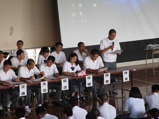 各種委員会と生徒会から平成29年度の活動報告と平成30年度の活動計画案が提示されました。全校生徒からの承認も得、今年度も生徒会を中心に球磨工業高校をより良くするために頑張ってくれることと思います。