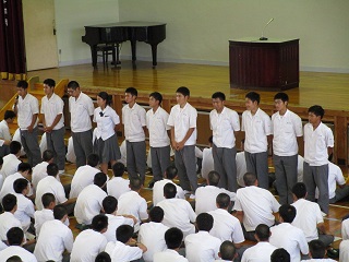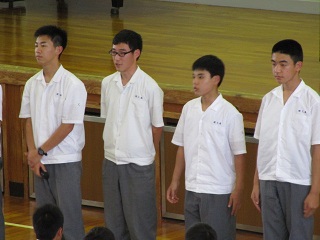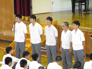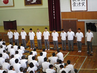生徒総会終了後、引き続きものづくりコンテスト県大会・高校総体九州大会出場生徒の激励式を行いました。