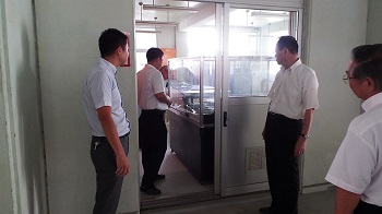 6月22日(金)10:00~12:00本校の校長室・大会議室において、平成30年度第1回学校評議員会・学校関係者評価委員会が開催されました。10:00から、校長室において5名の学校評議員の方に西校長より委嘱状が渡された後、10:10から各科の実習棟及び実習の見学、3年生の授業風景を見た後、11:00より学校評議員会議が行なわれました。