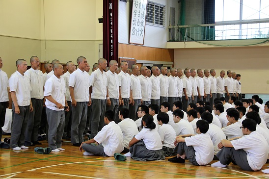 終業式での校歌斉唱は大きな声で力強く、美しいものでした。