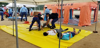 今回の防災訓練に携われた方は、約800名(消防団・下球磨消防組合・警察署・八代河川国道事務所・看護協会・無線クラブ・医療センター・球磨病院・外山胃腸病院・医師会・熊本河川国道事務所・西日本電信電話・球磨工業高校)で、平成30年度の人吉市総合防災訓練は無事終了しました。