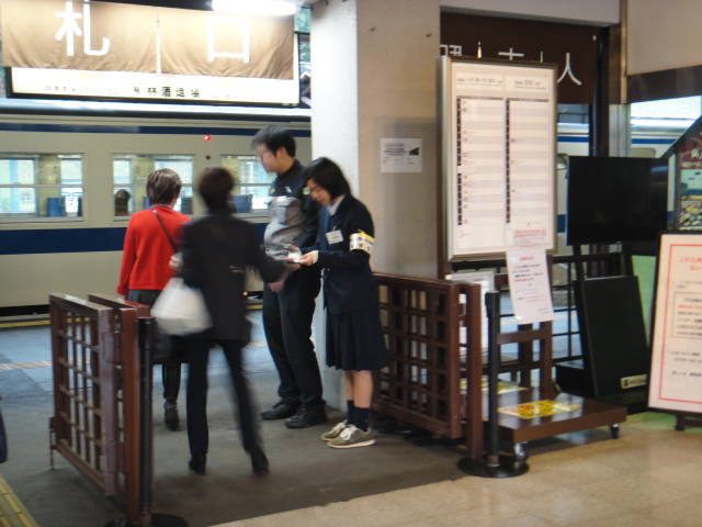 球磨工に列車で通学している3年生が、人吉駅の清掃を行いました。