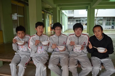走り終えた後は、保護者の方々が朝早くから用意してくださった豚汁をいただきました。