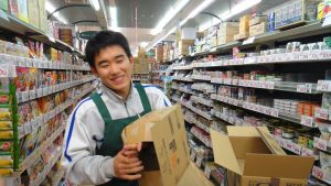 品出しをして段ボールをたたんでいます(ニシムタ人吉店 様:人吉市)
