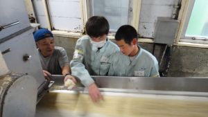 伝統建築専攻科2年の森下君、中川君、数学の喜多先生。