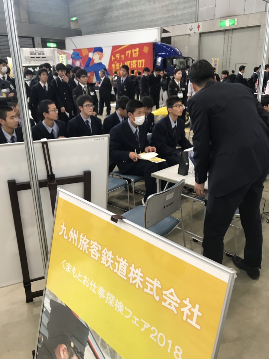 本日(12月12日水曜日)、グランメッセ熊本にて行われている「くまもとお仕事探検フェア2018」に1年生が参加しました。普段触れることのできない様々なものに触れたり、いろんな業種の仕事の話を聞いたりして学校では学べないことをたくさん勉強することができました。これからの進路選択を行う上で大事な体験ができたと思います。