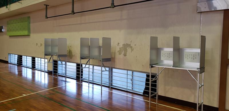 (市より実際に使用されている投票箱と記載台をお借りして行いました、ありがとうございます。)