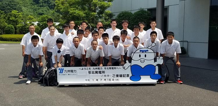 7月16日(火)に、九州電力(株)の協力により、電気科2年39名と1年26名と職員4名の計69名の参加で、天草郡苓北町にある苓北火力発電所の見学をさせていただきました。