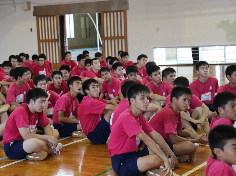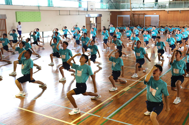 朝から容赦のない太陽のもと、全体練習が始まりました。