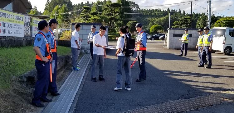 9月27日(金)7時20分から交通安全週間(9/22~30)の一環として、人吉警察署より4名、地域の交通安全協会より5名の方が来校され、校門の前で「交通安全週間です。事故に遭わぬよう、注意して登下校してください。必ず、一時停止し、安全を確認して道路横断するよう心がけてください」とビラを配りながら生徒一人一人に声をかけられていました。