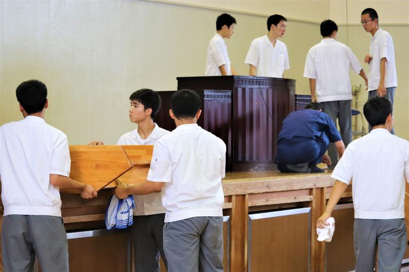 午後からは全生徒・全職員で会場の設営を行いました。