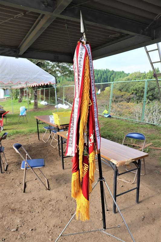 得点板の設営です。杭打ちもおまかせください花丸