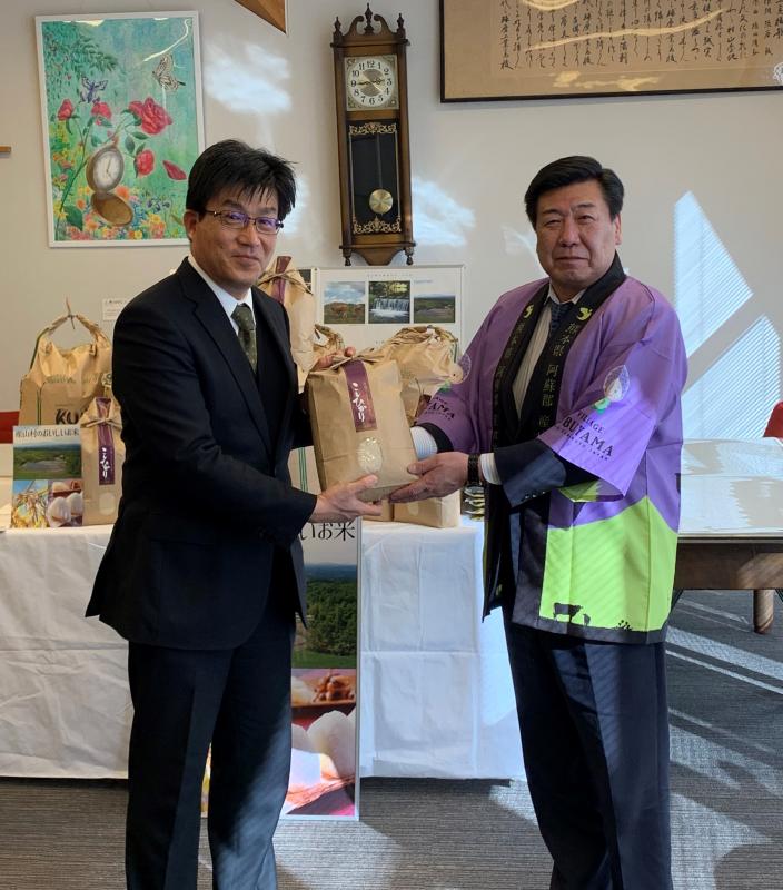 産山村からのお米の贈呈式