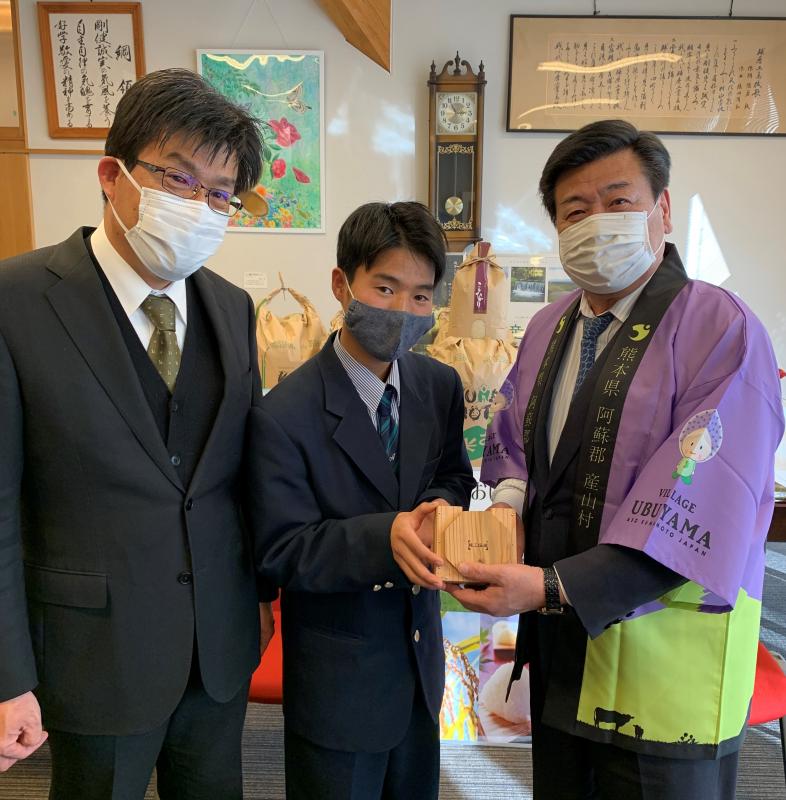 「産山村のお米を食べて、元気にこれからも技術の習得と学問に励んでいきたいと思います。」