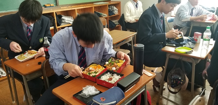 「3年間、弁当を作ってくれた方に感謝しながら、噛みしめて食べなさい!!」の一言で、生徒達は、「そうだ! 今日が最後ですね!」と、一口一口を噛みしめるように食べていました。
