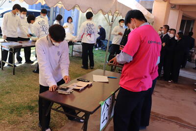 11月30日 3限目終了直前の地震発生の疑似発報により、シェイクアウト訓練を実施し、その後、グランド中央までの避難訓練を実施しました。今回の避難訓練は「停電してしまい、校内放送器具が使えない」という設定から、出火場所もわからず、避難者である生徒が自分で適切な避難路を考え、避難する形でした。生徒達は話し声も少なく、迅速に避難をしていました。
